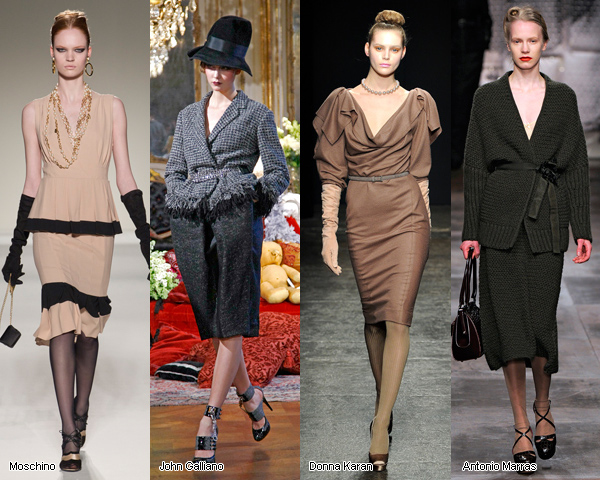 Эпоха уже настолько давняя, что мало кто из дизайнеров может считаться её свидетелем. Тем не менее ностальгию по сороковым испытывают многие. Есть в них и послевоенная скромность и безупречная женственность. Подчёркнутая талия, целомудренная длина ниже колена, милые шляпки и перчатки.