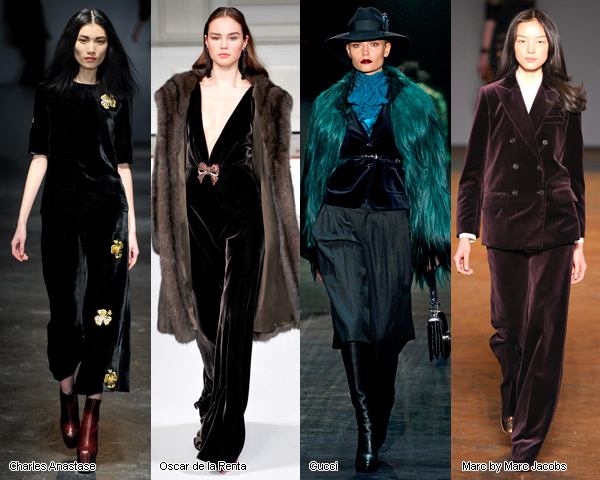 Роскошный материал, который ассоциируется больше с вечерними платьями, на этот раз нашёл применение и в брючных костюмах. Восхитительная фактура бархата делает даже самую простую вещь аристократичной.